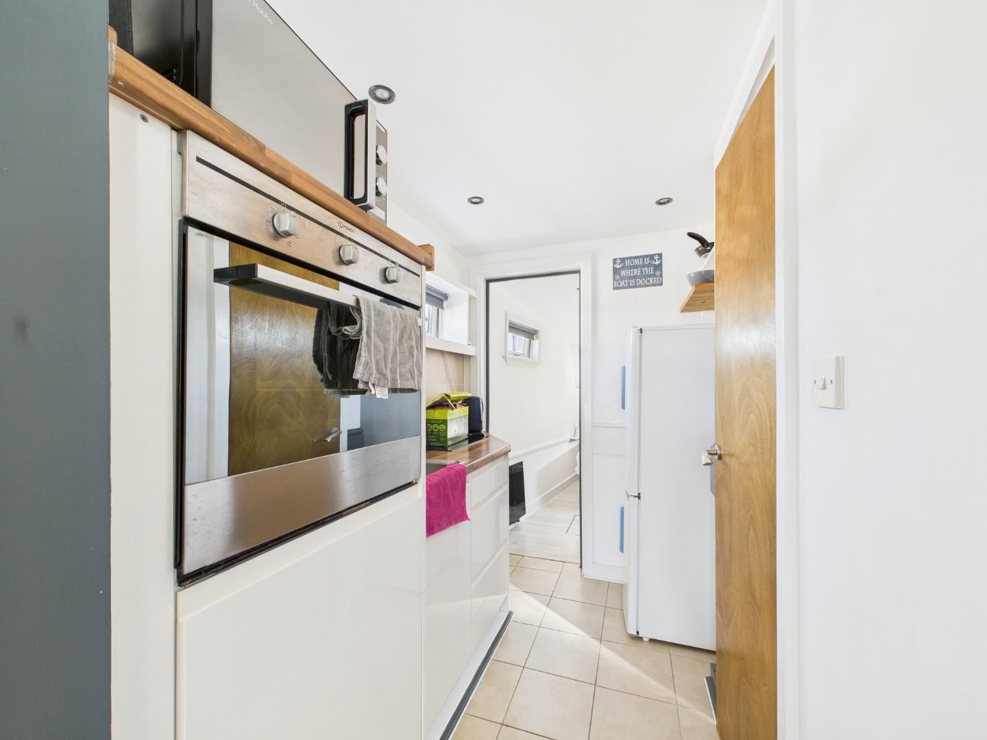 The boat has undergone extensive refurbishment in the past ten years where just about everything that could be replaced, has been. The boat is spread across one floor and makes full use of the space available. This home offers a double bedroom, open plan style kitchen area, a bright modern bathroom with a shower suite, and a spacious reception room, complete with a log burner. The whole property is flooded in natural light and benefits from an allocated parking space as you enter the boat yard, as well as a communal garden area with security gates, promoting a sense of security.