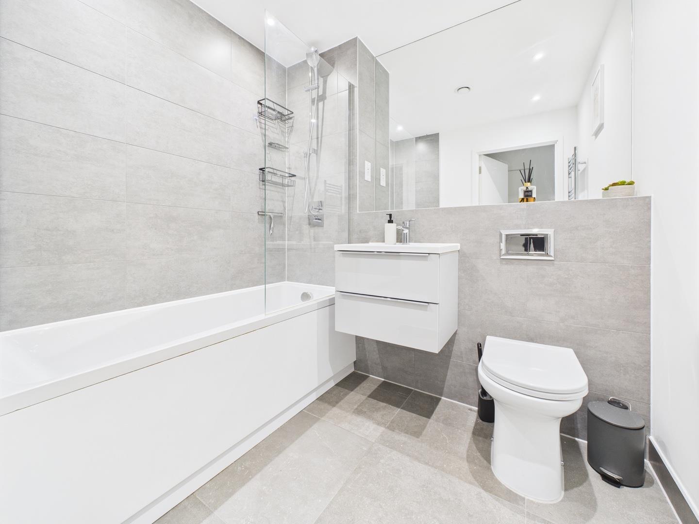 The master bedroom includes a fitted wardrobe, and a stunning en-suite shower room. There is a second double bedroom, luxurious bathroom with shower to bath, and ample storage within the apartment.